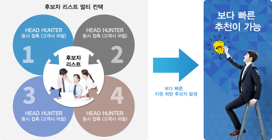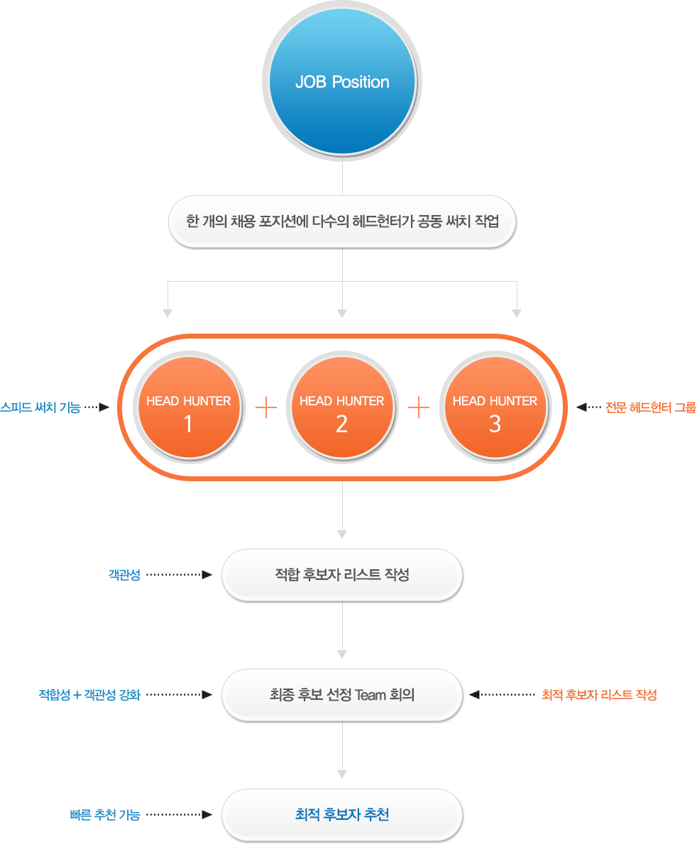 하나의 포지션에 여러명의 헤드헌터가 한 팀이 되어 최적의 후보자를 찾아 추천하는 방식을 말합니다.